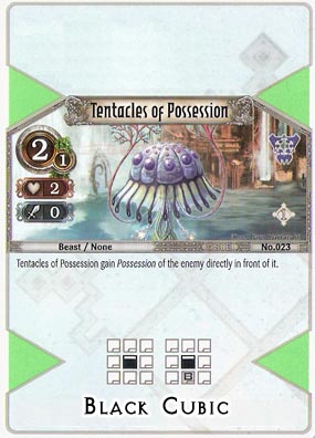 The obvious downside to the Tentacles is that it cannot attack at all. With no Attack Pattern, there is just simply no way for this card to do any damage. On top of that, while Possession will give you control of an enemy card, it won’t prevent them from winning the game – a Possessed card still counts towards your enemies 5 cards, so if you find yourself in Check, with only the Tentacles in your hand, you’re in a lot of trouble.